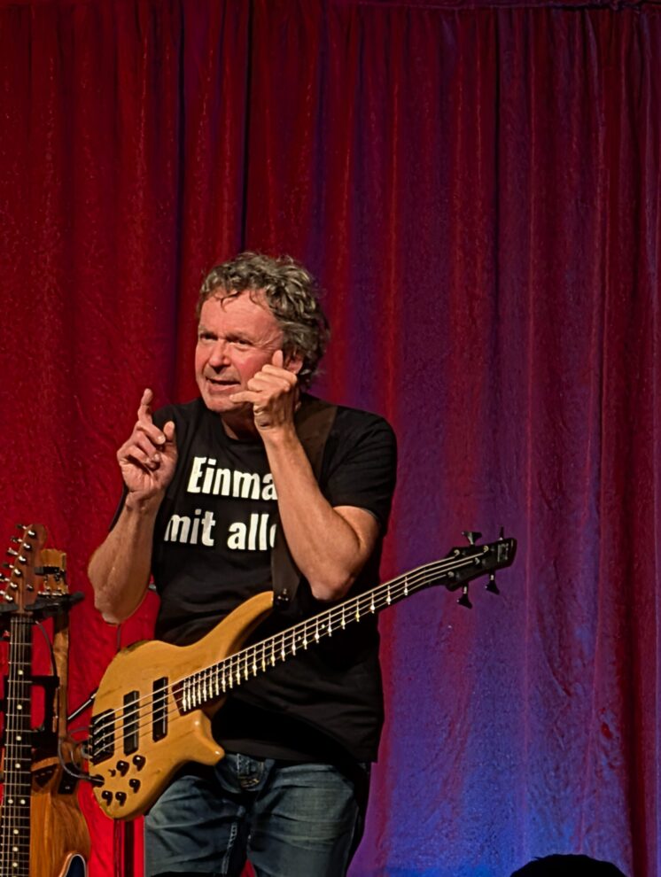 Persönliche Abgleiche und der Künstler selbst an der Bar im Saal in der Pause sorgten dann für eine sehr launige Unterbrechung – und mit Sicherheit die längste in der Geschichte der Bühne Laxenburg – bevor sich Thomas Strobl, der seine Bühnenanfänge als Bassist mit Jazz Gitti und den Disco Killers hatte „Und glauben Sie mir, der Bass ist der Burgenländer unter den Instrumenten!“, mit „I bin in Laxenburg daham“ endgültig in alle Herzen sang. Und so seinen zahlreichen Gästen zu einem wirklich wohlig gelungenen Herbstabend verhalf.
