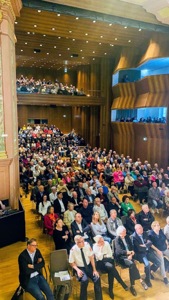 Heuer wurden die Verantwortlichen der Marktgemeinde aber vor einigen Tagen mit mehr als 400 Anmeldungen überrascht. Ein neuer Veranstaltungsort musste gesucht werden und war durch die gute Zusammenarbeit im Ort und mit allen Institutionen mit dem Schloss Laxenburg auch rasch gefunden. Grund für das heuer so große Interesse waren die vier großen Themen des Ortes: Der Kindergartenzubau, die Modernisierung des Feuerwehrhauses und nicht zuletzt die Pläne für das letzte große unbebaute Gemeindegrundstück im Ortskern und besonders die Möglichkeit einer Unterführung der Aspangbahn.