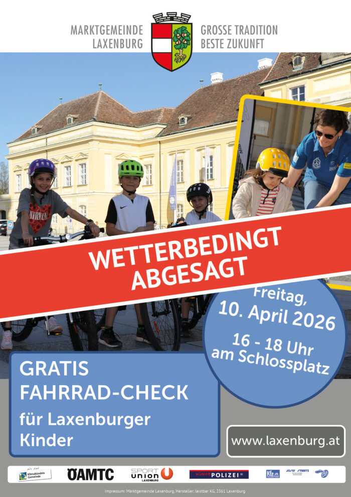 Wir müssen leider heute den beliebten Fahrradcheck für Kinder am Schlossplatz auf Grund des Wetters absagen. Einen Ersatztermin wird es aus Termingründen aller Verantwortlichen diesmal nicht geben.