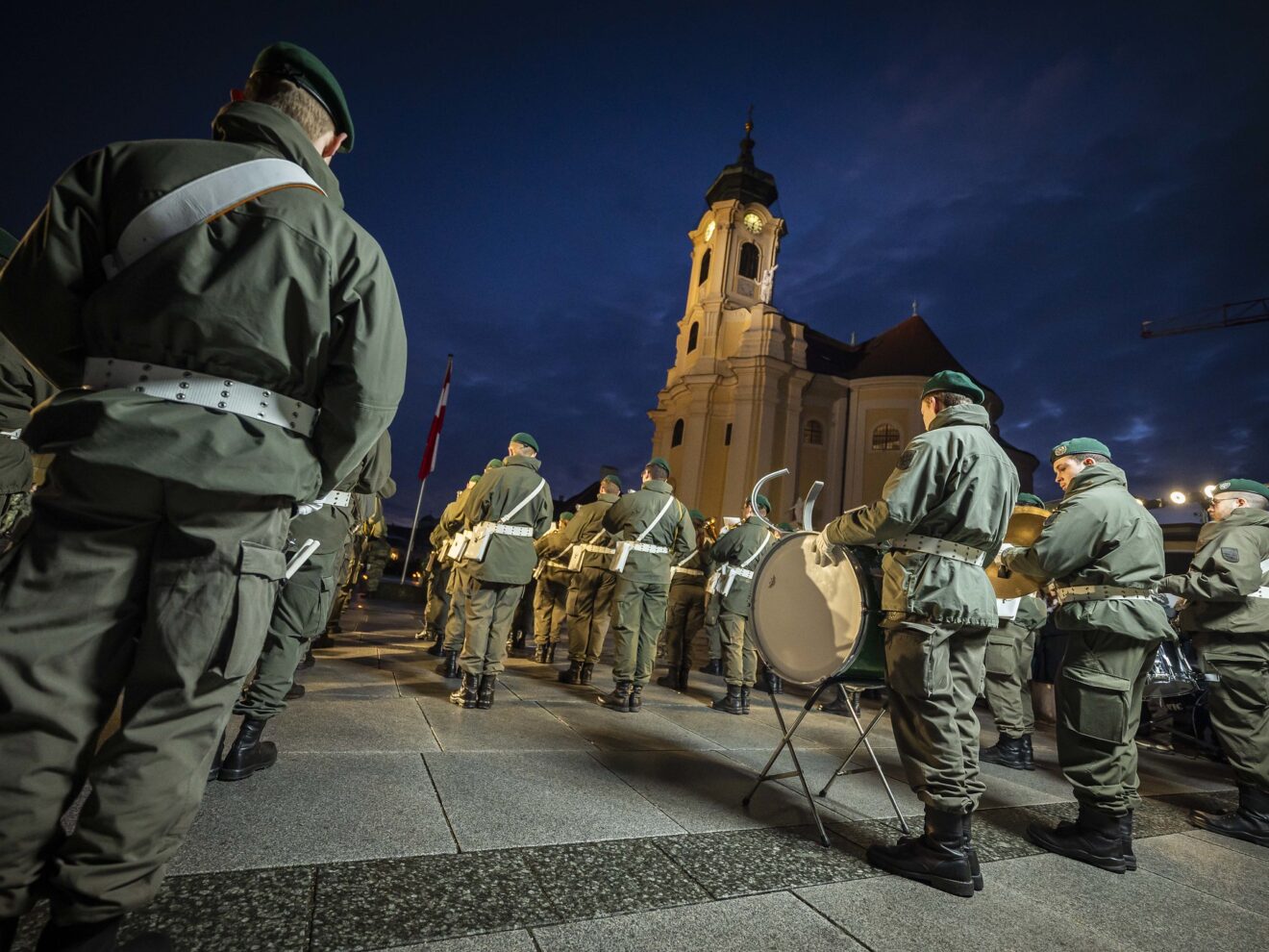 Und so ist es kein Wunder, dass der Schlossplatz, der in der Geschichte immer wieder als kaiserlicher Antreteplatz gedient hat, an diesem Donnerstag geradezu aus allen Nähten platzt. Die Militärmusik Burgenland sorgt mit stimmungsvollen Melodien für noch mehr Atmosphäre, als die Soldatinnen und Soldaten dann in der Dämmerung auf den Platz einmarschieren. Bürgermeister David Berl und die Verteidigungsministerin Klaudia Tanner gehen die militärischen Reihen ab, bevor einige starke Reden zu spontanem Applaus auf dem Platz veranlassen. Es ist von Werten die Rede, die „wir für so verständlich gehalten haben“, findet der Kommandant der Milak, Generalmajor Karl Pronhagl, deutliche Worte für die sich derzeit stark verändernde weltpolitische Lage, während die Geistlichkeit besonders den Zusammenhalt und die Gemeinschaft in den Mittelpunkt stellt, bevor der Militärimam Kenan Čorbić sich direkt an diejenigen wendet, die den Islam nicht verstanden hätten und die Welt terrorisieren würden.