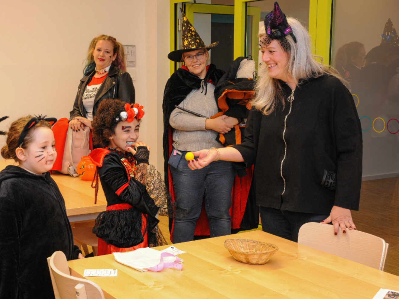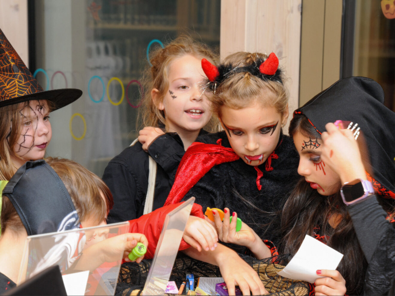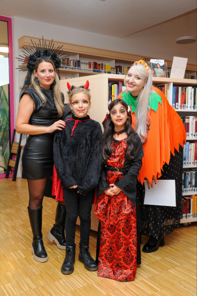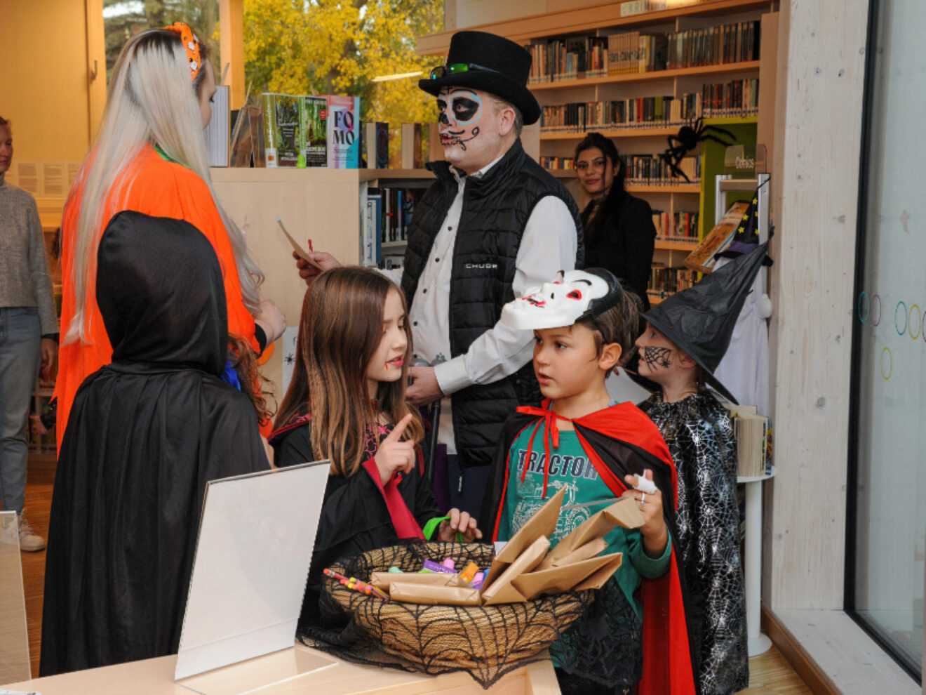 An Halloween kommt man nicht mehr vorbei – egal, ob man das gut findet oder nicht. Was man aber nur wirklich gut finden kann, ist die witzige Gemeinschaft, die sich am Freitag, den 31. Oktober 2025, in der Bibliothek am Campus und auch im dämmrigen Rathauspark zusammengefunden hat, um sich gemeinsam ein bisschen zu gruseln. Da wurden unheimliche Geschichten vorgelesen und Spiele gespielt oder auch einfach nur Süßigkeiten gesammelt und Faxen gemacht. Gelächter war später im dunklen Rathauspark zu hören, wo sich viele am Ende eingefunden hatten, um den späten Nachmittag in den Herbstferien gemeinsam ausklingen zu lassen. Bei Kinderpunsch und Punsch mit Schuss wurden kleine Süßigkeiten verteilt und Verkleidungen bewundert, Verstecken gespielt und die anderen erschreckt.