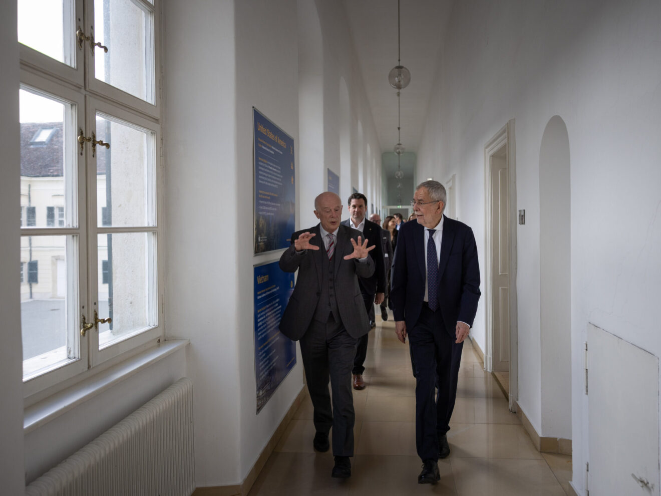 „Völkerverständigung durch gemeinsame Spitzenforschung“, erklärt Direktor Schellnhuber die besondere Charakteristik der Forschungseinrichtung. Jedes Jahr wären die Wissenschaflter*innen des Instituts unter den weltweit meistzitierten Forscher*innen, so John Schellnhuber und unverzichtbar im Bereich der Science Diplomacy, denn Ideen könne man – im Vergleich zum Warenhandel – austauschen und dadurch ständig vermehren. Bundespräsident Van der Bellen zeigte sich begeistert von der Geschichte und der heutigen Arbeit des IIASA, in dem auch 2026 Forscherinnen und Forscher aus den USA und China, Russland und der Ukraine oder auch Israel und dem Iran Seite an Seite an zahlreichen Projekten zusammenarbeiten.