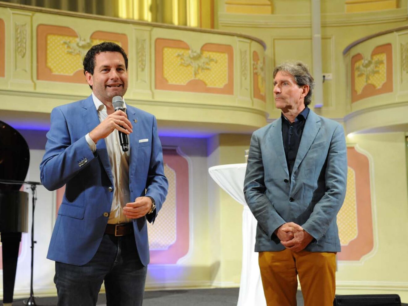 Und zwischen dieser launigen Doppelkonference begeisterte Angelika Kirchschlager, einfühlsam begleitet durch den hervorragenden Pianisten Dieter Paier, immer wieder durch ihre Gesangskunst. Mit ihrem Markenzeichen, ihrer warmen, ausdrucksstarken und außergewöhnlich schön timbrierten Stimme präsentierte sie Lieder von Korngold, Schubert, Brahms und Mahler, zudem die Habanera aus „Carmen“, aber auch Chansons und das eine oder andere Volkslied und zeigte sich damit wieder einmal als eine der gewinnendsten und natürlichsten Sängerpersönlichkeiten des Landes.